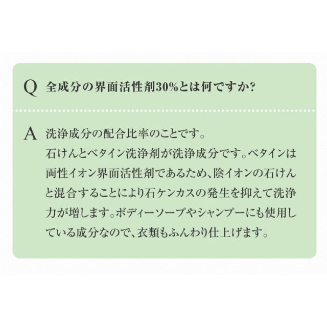 界面活性剤(30%)、純石けん分(24%脂肪酸カリウム)、
