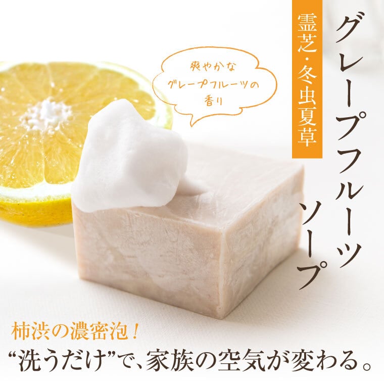 ・「霊芝」「北冬虫夏草」を高配合。美肌を育てる固形石鹸。洗顔石鹸にもご利用いただけます。