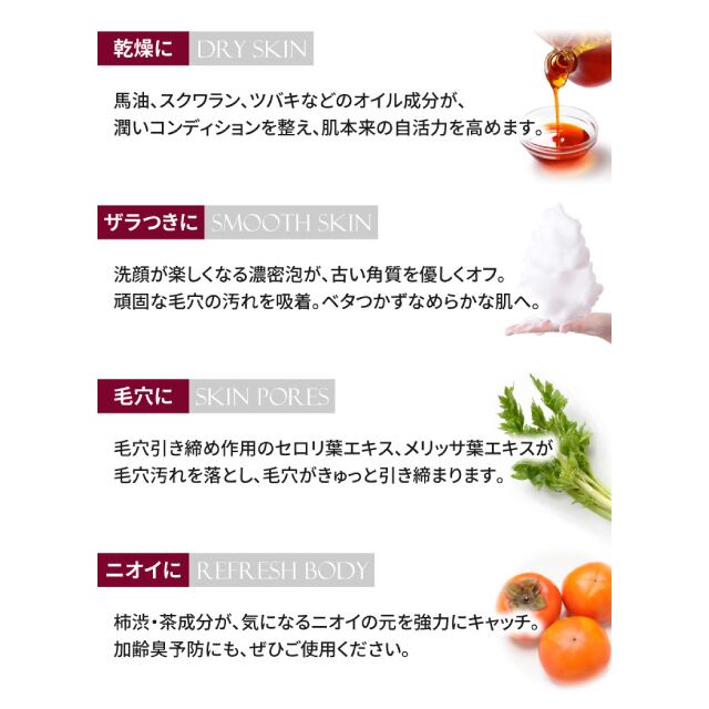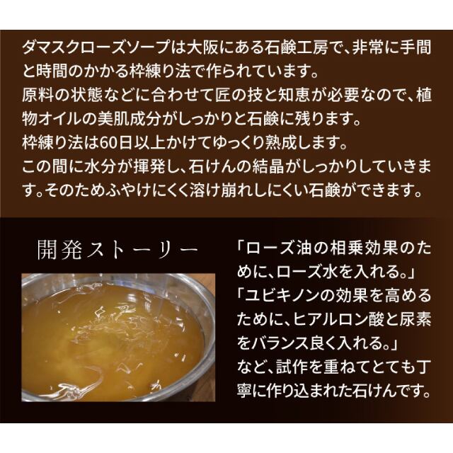 ● 60日間じっくり熟成しているため、天然成分が劣化せず、ふやけず長持ち。