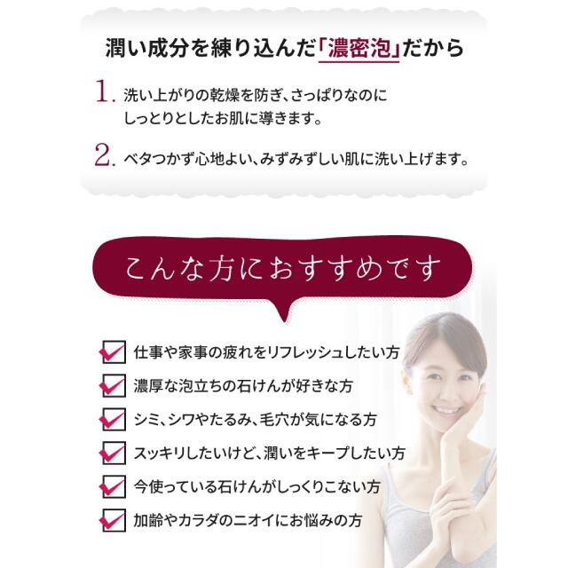 ● リラックス効果満点の濃密泡が毛穴の奥までキレイにOFF!