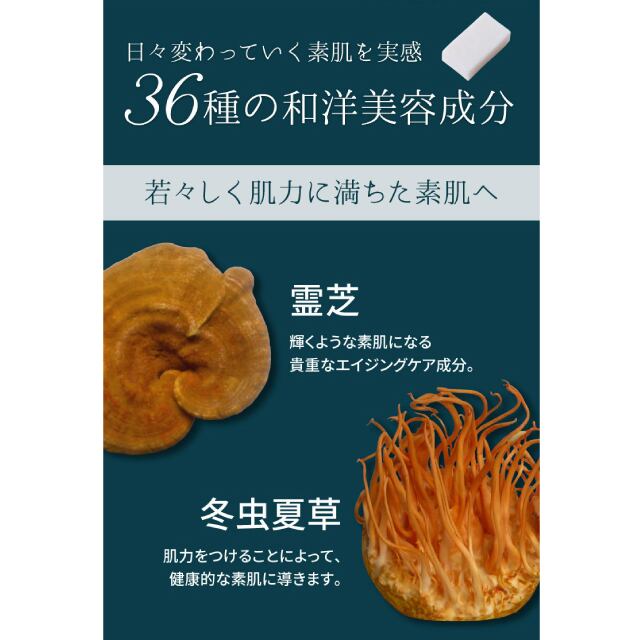 ● 36種の和洋美容成分を配合した枠練り製法の石けん。