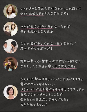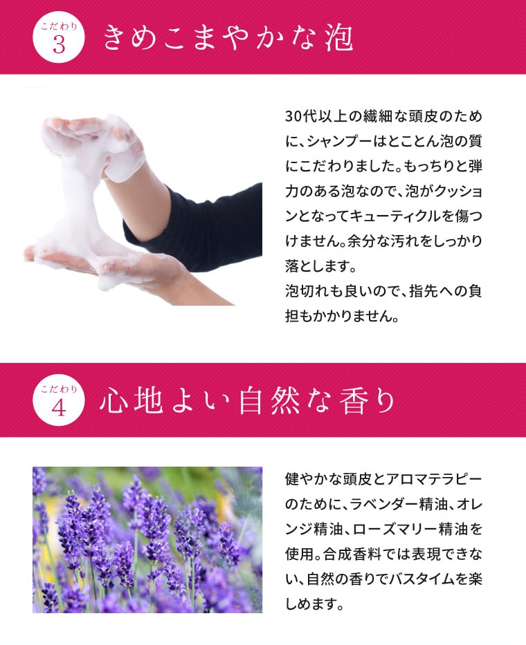 髪と地肌をいたわりたい方、頭皮と髪にうるおいを与えたい方。枝毛・切れ毛でお悩みの方にもオススメです。