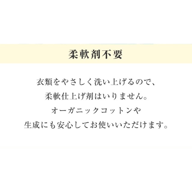 オーガニックコットンなど生成りの衣類・タオル洗いにも安心です。